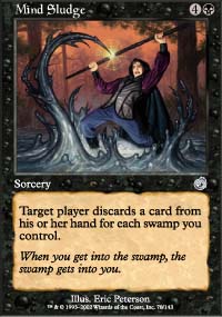 The Odyssey block decks used Cabal Coffers and a vast array of swamps to power critical turns with Mirari. The deck could fetch any card it needed with Diabolic Tutor, copy it with Mirari to get the card you need and another tutor. It would win by powering Corrupt. The deck had creature removal in the form of Chainer's Edict and Mass removal in the form of Mutilate , and plenty of hand disruption, Mind Sludge for mass discard and Duress for stripping problem cards from the opponent's grasp.