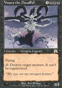 Other solid choices would be Helldozer (for mana advantage, with Gauntlets on the board, could act as a one sided Armageddon!) Stronghold Overseer, for evasive damage (a lot of evasive damage!) and Nightmare, which just gets huge! Skeletal Vampire, Triskelavus and Debtor's Knell round off our options.