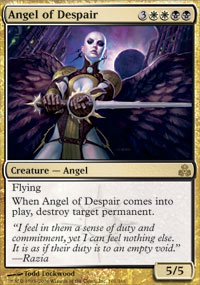 Angel of Despair. You can also add some more of the dual lands to smooth the mana problems, but beware of Cryoclasm